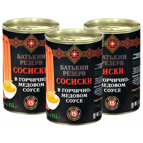 Сосиски из мяса Батькин Резерв консервированные в горчично-медовом соусе 3 штуки по 410 гр с ключом