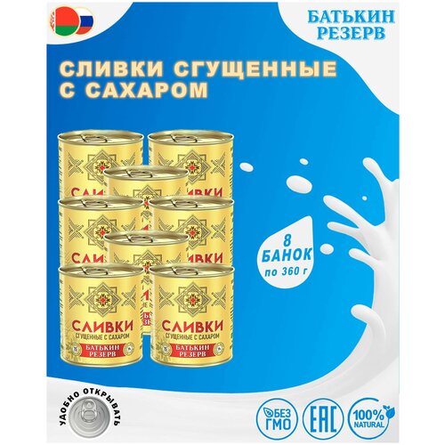 Сливки сгущенные с сахаром, Батькин резерв, ГОСТ, 15 шт. по 360 г
