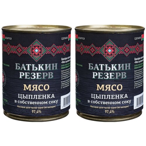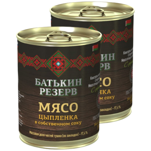 Цыпленок мясо в собственном соку, Батькин резерв, ГОСТ, 2 шт. по 350 г