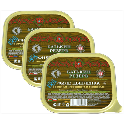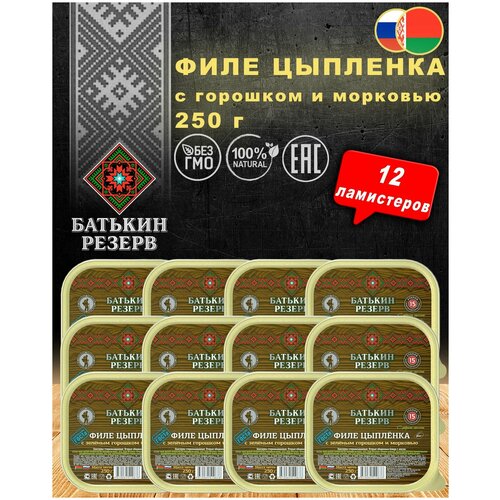 Филе цыпленка с горошком и морковью, Батькин резерв, ТУ, ламистер, 12 шт. по 250 г