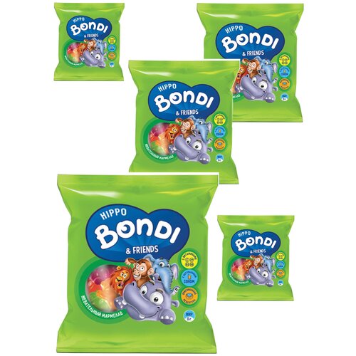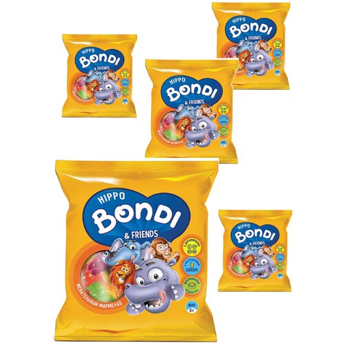 «HIPPO BONDI & FRIENDS», мармелад жевательный с соком ягод и фруктов, 70 г 5 пачек