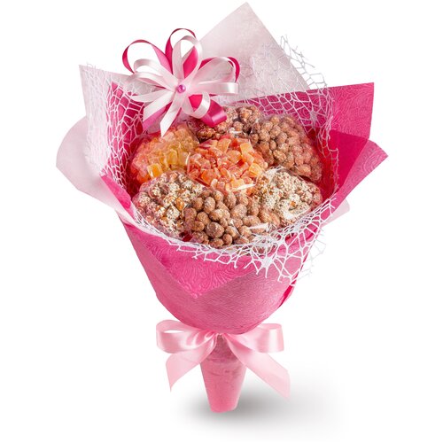 Букет из орехов, цукатов и сладостей "Первая улыбка", 510 гр (коралловый)