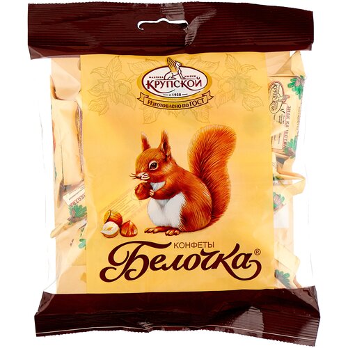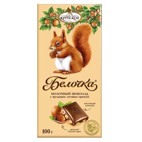 Шоколад Белочка молочный с цельным фундуком фабрика им. Крупской 100гр