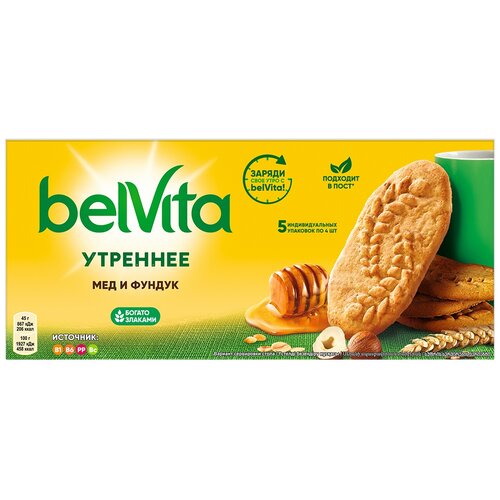 BelVita утреннее Печенье МЕД и фундук витаминизированное с фундуком и медом, 5 индивидуальных упаковок, 225г