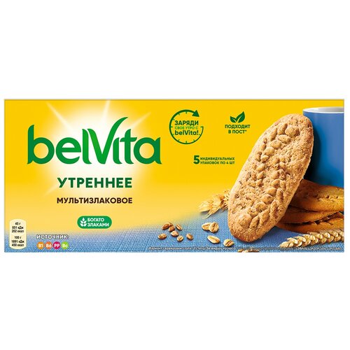BelVita утреннее Печенье мультизлаковое витаминизированное со злаковыми хлопьями, 5 индивидуальных упаковок, 225Г