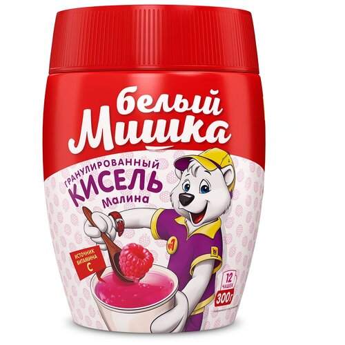 Кисель растворимый со вкусом малины Белый мишка 300 гр