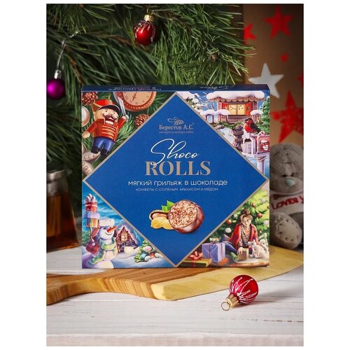 Конфеты мягкий грильяж в шоколаде Shoco Rolls с арахисом, солью и мёдом, 135г