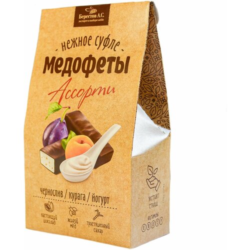 Конфеты суфле Медофеты с йогуртом, курагой, черносливом в шоколадной глазури 150 г 1 шт