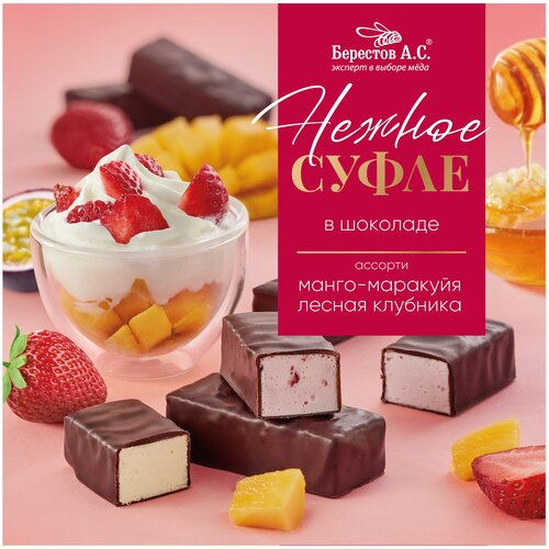 Конфеты "Берестов А.С." Нежное суфле Ассорти манго-маракуйя/с лесной клубникой, коробка 155г