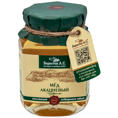 Мед натуральный цветочный полифлорный "Берестов А.С." "Избранное" "Акациевый" ст.банка 200г