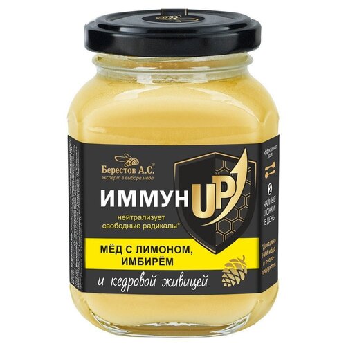 Мёд нат. Берестов А.С. ИммунUP С лимоном, имбирем и кедр.живицей с/б 200г