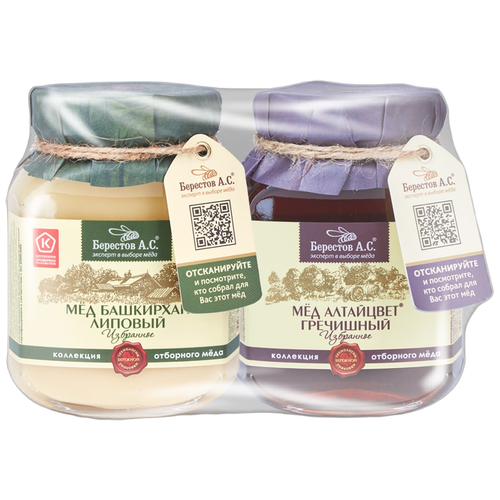 Мед липовый Башкирхан+Алтайцвет гречишный, ст. банка 500г х 2 шт