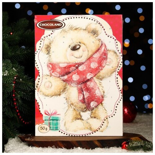 Адвент календарь с с мини плитками из молочного шоколада "Мишка", ассорти, 50 г