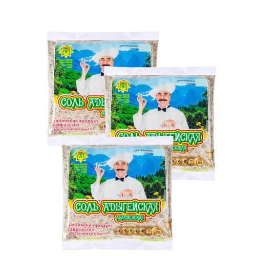 Адыгейская соль Уляпская "Без бренда", 3 пакета по 450 г, средний помол