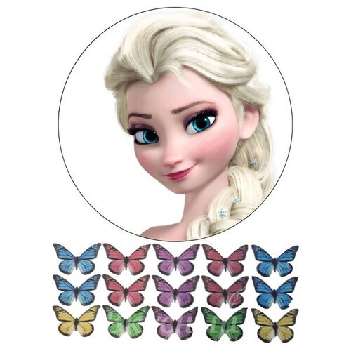 Картинка вафельная Замороженные Эльза и бабочки
