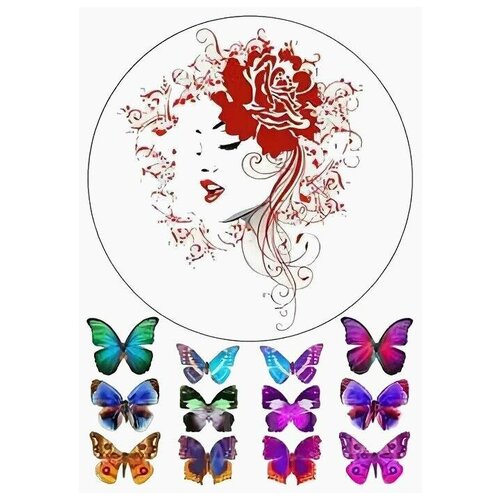 Картинка вафельная Девушка и бабочки