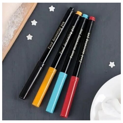 Кондитерские маркеры для украшения десертов, 4 цвета / съедобные, пищевые, разноцветные фломастеры