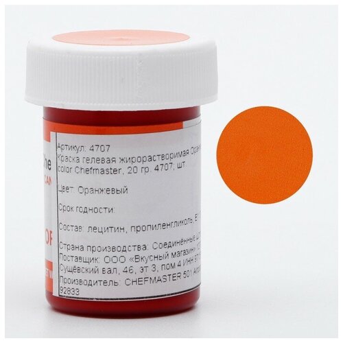 Краска гелевая Chefmaster, жирорастворимая, оранжевая, 20 г