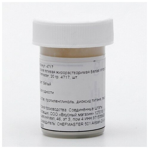 Краска гелевая Chefmaster жирорастворимая, белая, 20 г