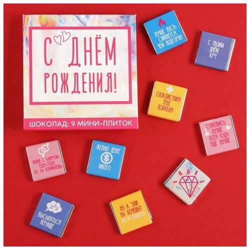 Молочный шоколад 9 шт в конверте "С днем рождения", 45 г. ( 9 шт. х 5 г.)