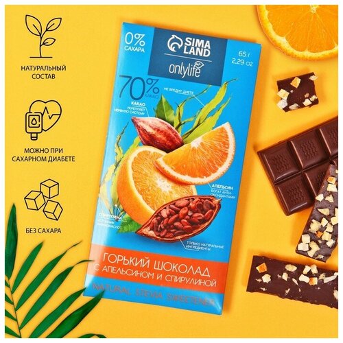 Молочный шоколад Onlylife с апельсином и спирулиной, без сахара, 65 г.