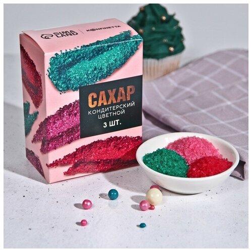 Набор кондитерского цветного сахара KONFINETTA: изумрудный, розовый, малиновый, 150 г.