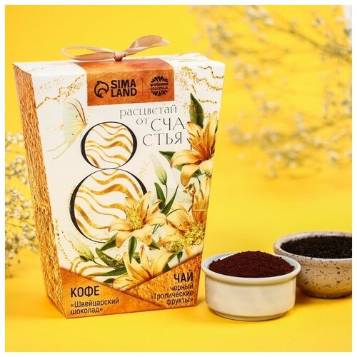 Подарочный набор «Расцветай от счастья»: чай чёрный: тропические фрукты 100 г., кофе: швейцарский шоколад 50 г.