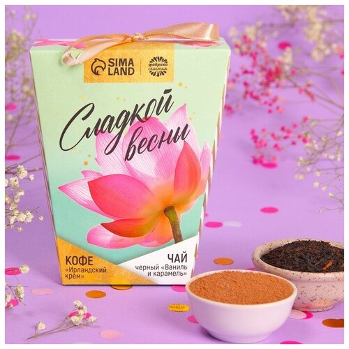 Подарочный набор «Сладкой весны»: чай чёрный, вкус: ваниль и карамель 100 г., кофе, вкус: ирландский крем 50 г.