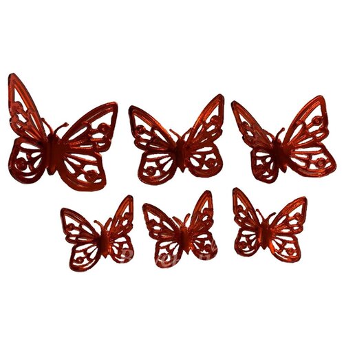 Украшение зеркальное красное Бабочки изогнутые 6 шт.
