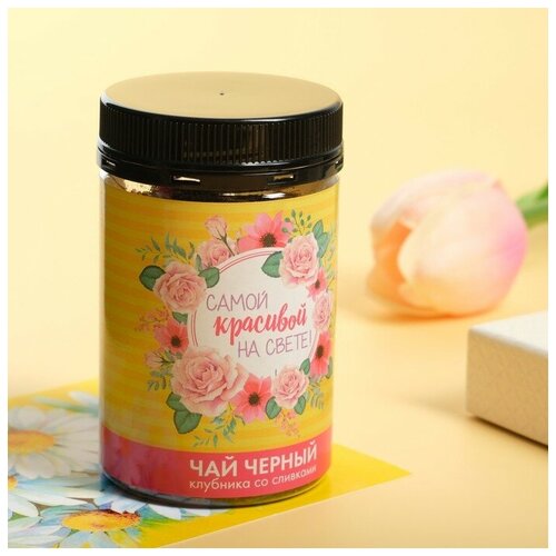 Чай черный в банке "Самой красивой на свете!" с клубникой со сливками, 50 г