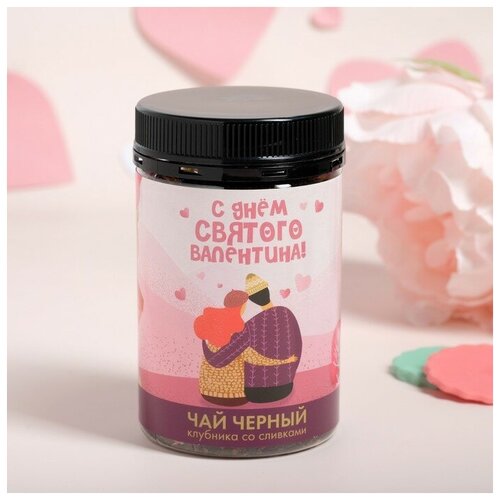 Чай черный в банке "С Днём Святого Валентина!" с клубникой со сливками, 50 г