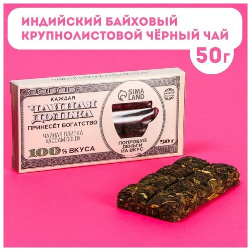 Чайная плитка «Попробуй деньги на вкус» вкус: accam gold (индийский байховый крупнолистовой чёрный чай), 50 г.