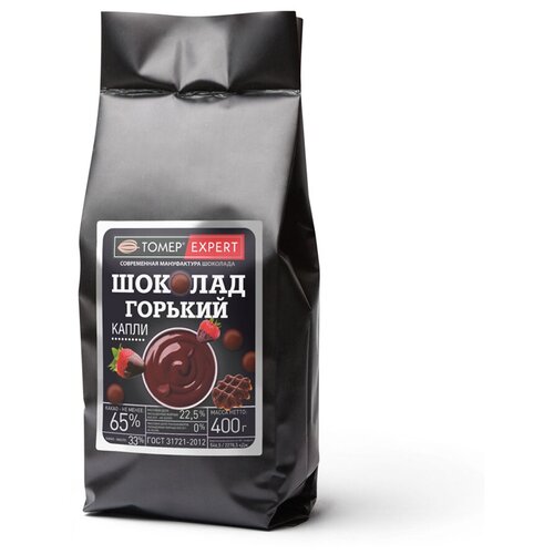 Шоколад горький 65% какао в каплях Expert Томер, 400 гр.