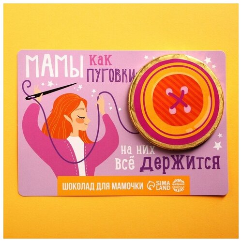 Шоколадная медаль «Мамы как пуговки», открытка, 25 г.