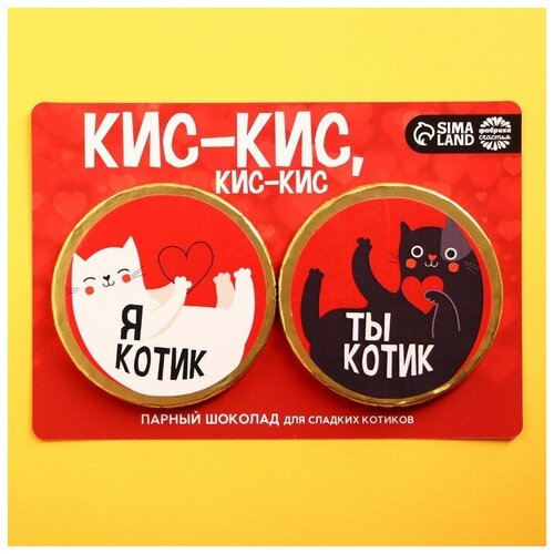 Шоколадные медали «Кис-кис», открытка, 2 шт x 25 г.