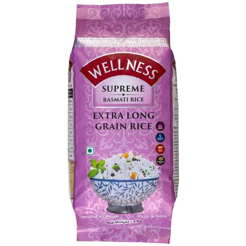 Рис Басмати длиннозерный Екстра Лонг (Extra long grain basmati rice) WellNess | Велнесс 1кг