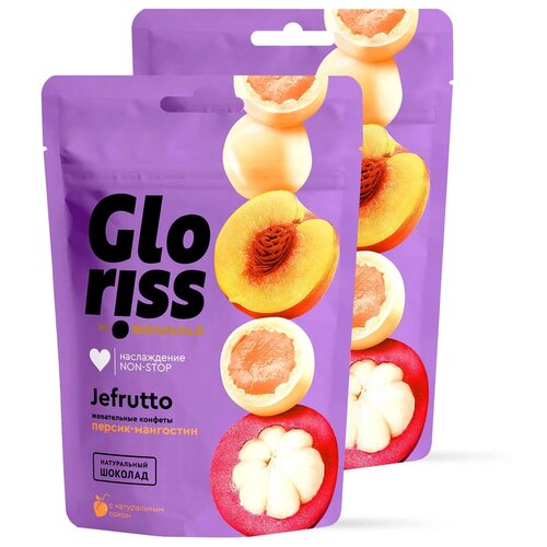Жевательные конфеты Gloriss Jefrutto в шоколаде персик-мангостин, 75гр