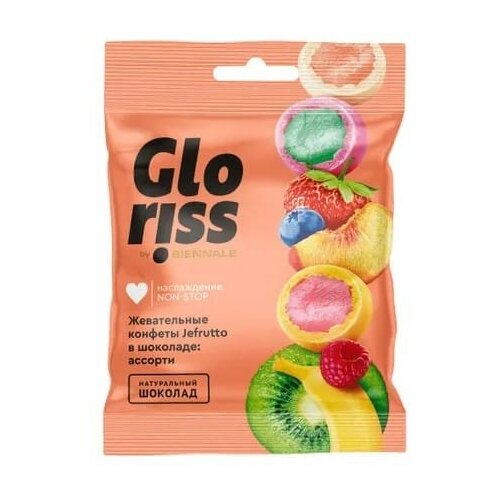 Жевательные конфеты BIENNALE "Gloriss Jefrutto" в шоколаде со вкусом клубника-банан 75 г
