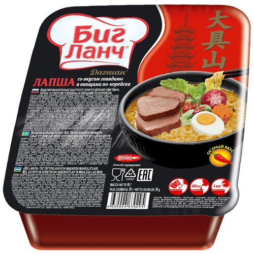 Лапша быстрого приготовления Биг Ланч Лоток со вкусом говядины и овощами по корейски 90г х 8шт