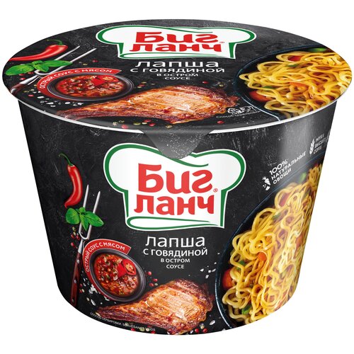 Лапша быстрого приготовления Биг Ланч говядина в остром соусе 75 гр — 6 шт