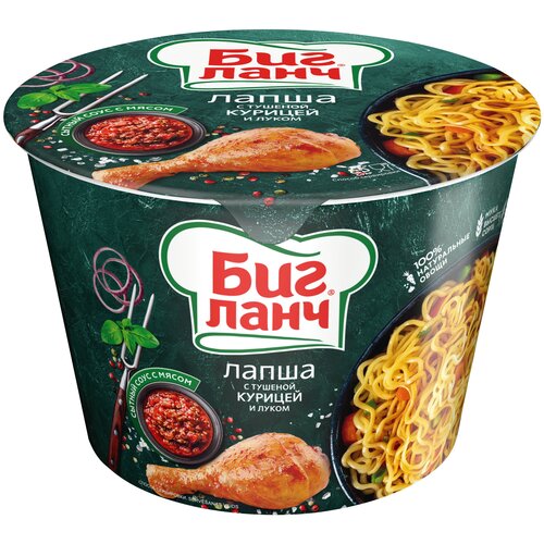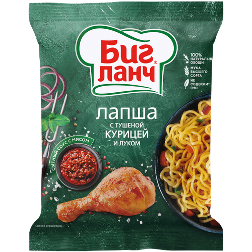 Лапша быстрого приготовления Биг Ланч с тушёной курицей и луком, 75 г
