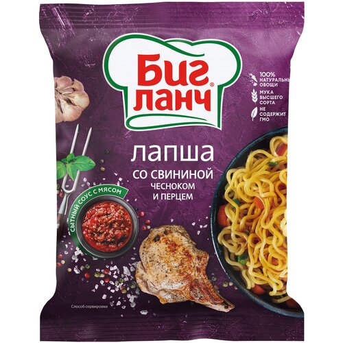 Лапша быстрого приготовления Биг Ланч Пакет свинина с чесноком и перцем 75г х 60шт
