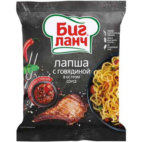 Лапша быстрого приготовления Биг Ланч Пакет говядина в остром соусе 75г х 20шт