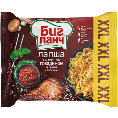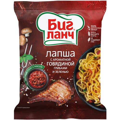 Лапша быстрого приготовления Биг Ланч с ароматом говядины, грибами и зеленью 75 гр — 12 шт