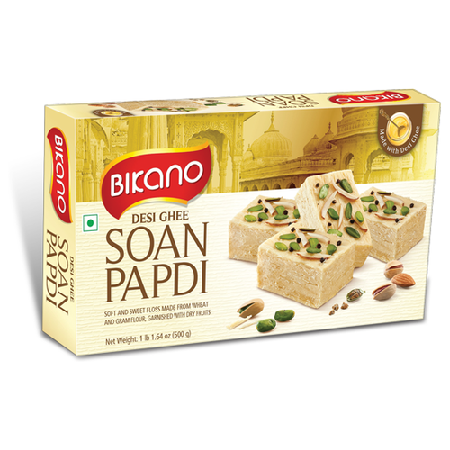 Сладкая нежная халва “Соан Папди-G” с орехами, лоток из полипропилена, картонная коробка, Bikano, 500 г