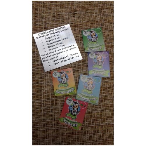 Второй набор разной закваски Лактоферм, 5 пакетиков Йогурт, Кефир, Бифидонорм, Творог, Ряженка