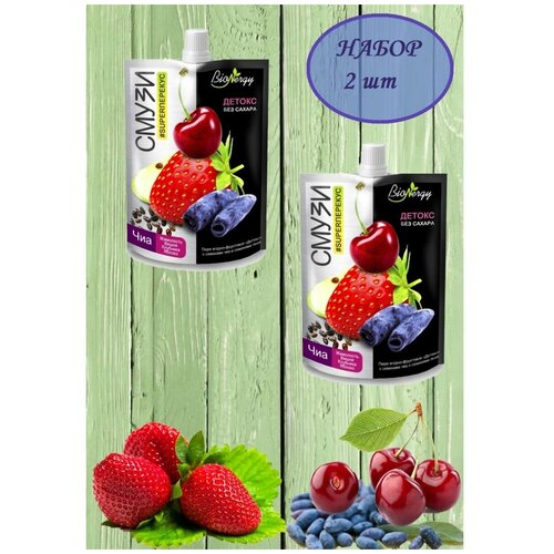 Смузи Детокс без сахара, Чиа (жимолость, вишня, клубника, яблоко) BioNergy, 10 шт по 120 гр