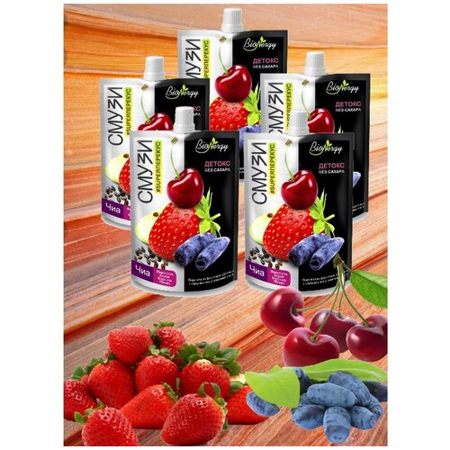 Смузи детокс жимолость, клубника, вишня, яблоко BioNergy(в наборе 3шт по 120г)