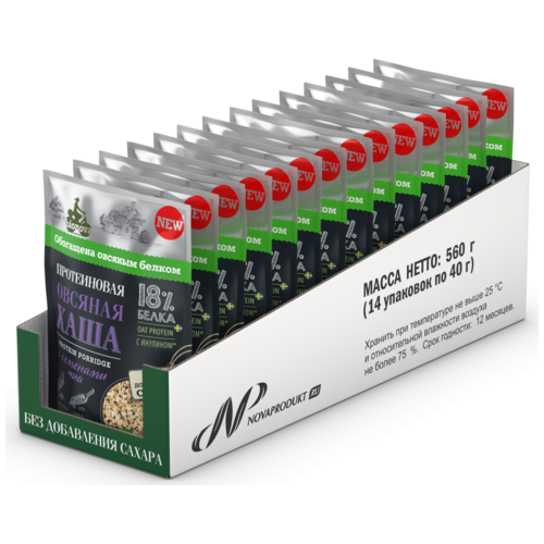 Протеиновая овсяная каша Bionova® с семенами Чиа (vegan protein) 40г, 14 шт