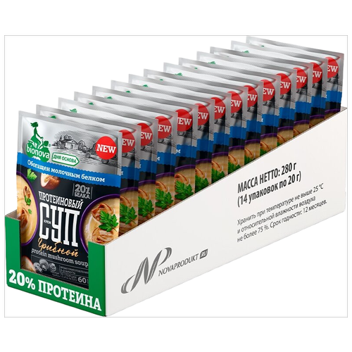 Протеиновый грибной крем-суп Bionova® (milk protein) 20г, 14 шт